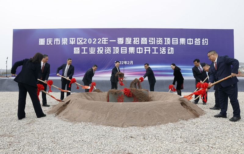(2月25日,重慶市梁平區2022年一季度招商引資項目集中簽約暨工業投資項目集中開工活動現場,奠基培土儀式)